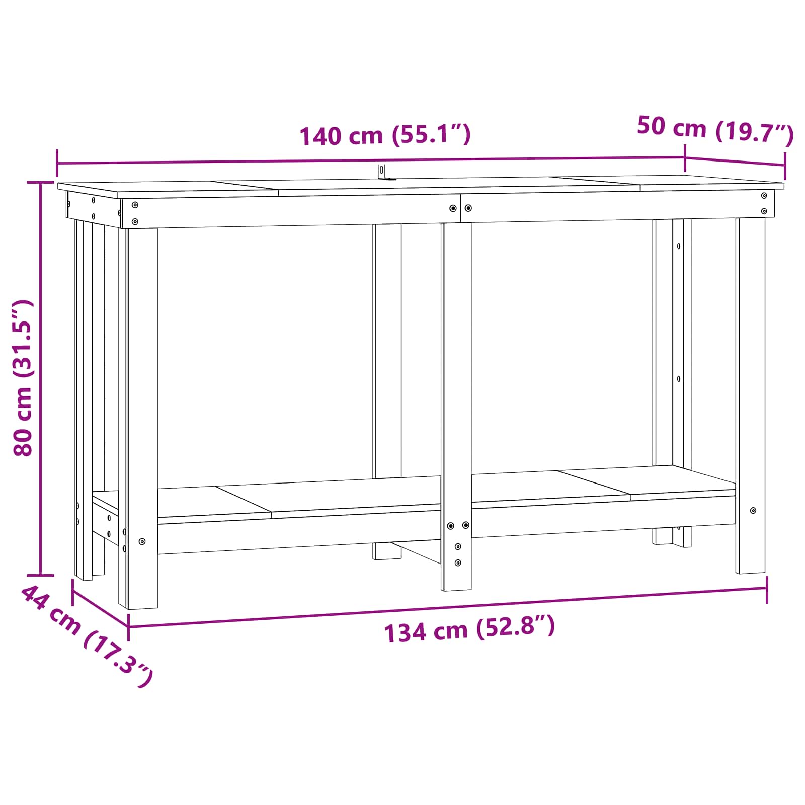 - Samlede dimensioner: 140 x 50 x 80 cm (L x B x H)