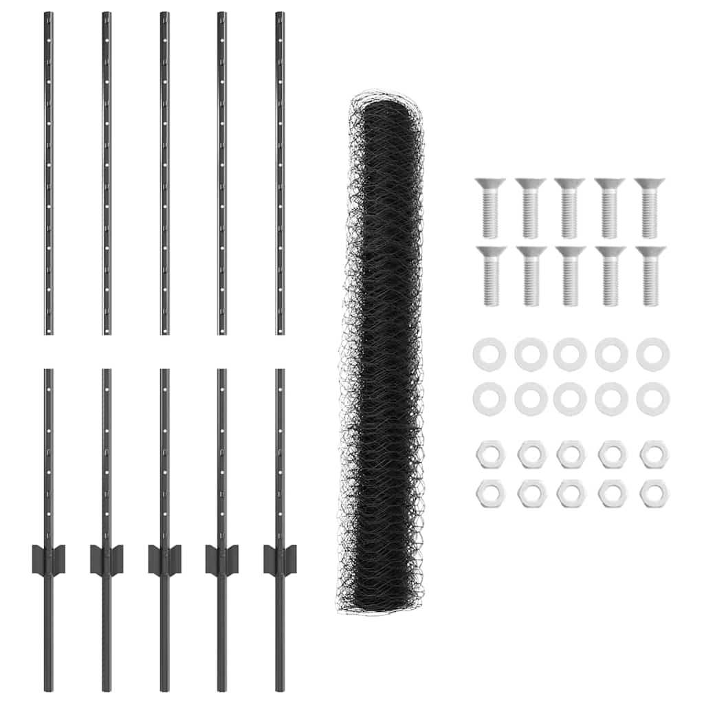 Dette hegnpanel sæt kombinerer styrke med stil. Det er perfekt til at skabe rum i din have eller på terrassen. Lavet til udendørs brug, har det en fleksibel opsætning til forskellige landskaber. Med stolperne og den langtidsholdbare pulverlakerede finish ser det altså både godt ud og holder længe.