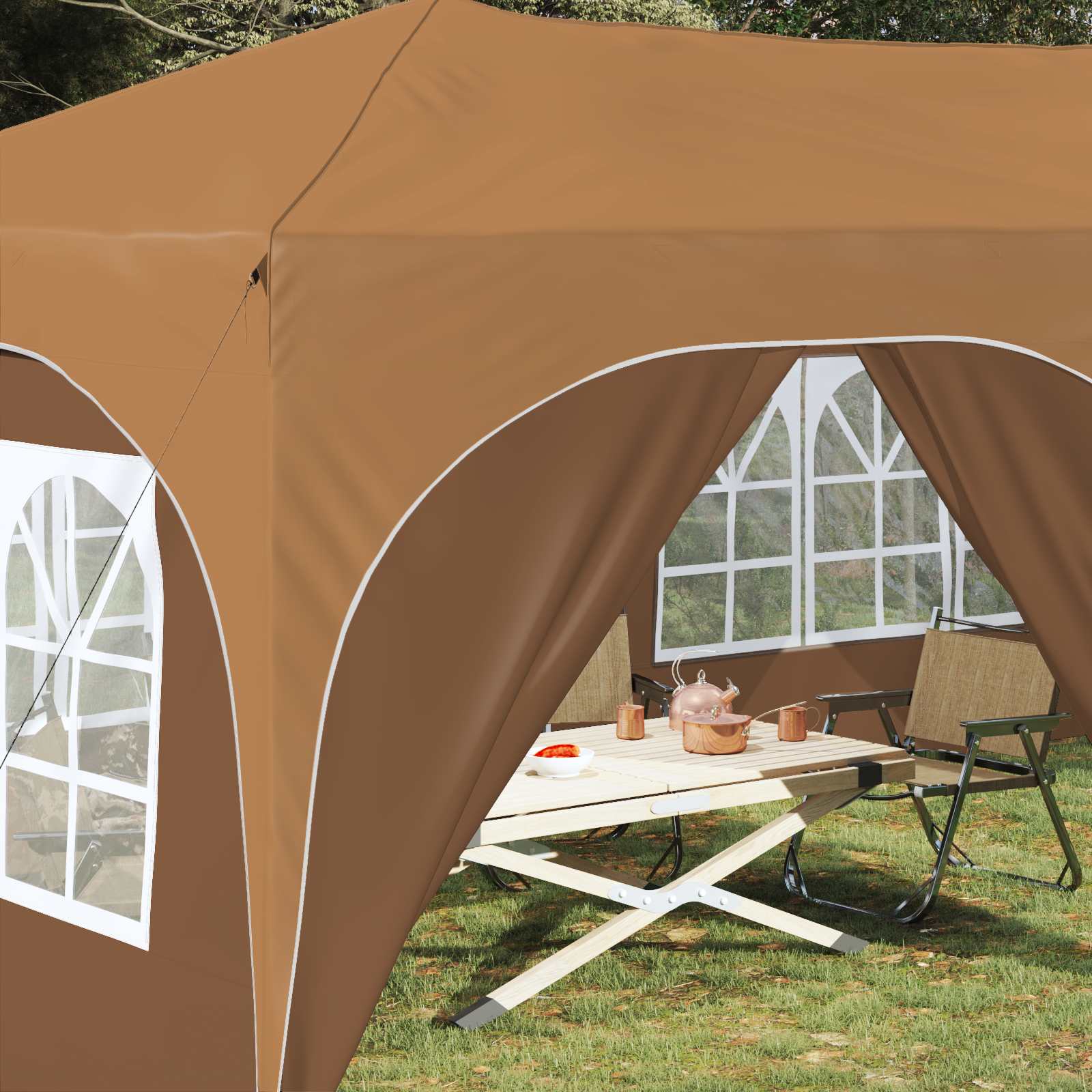 - Holdbart Oxfordstof: Teltet er lavet af Oxfordstof, der er meget modstandsdygtigt over for vejr. Det holder gæster og møbler tørre ved at beskytte mod sol og let regn, så dit udendørs område kan bruges året rundt uden problemer.