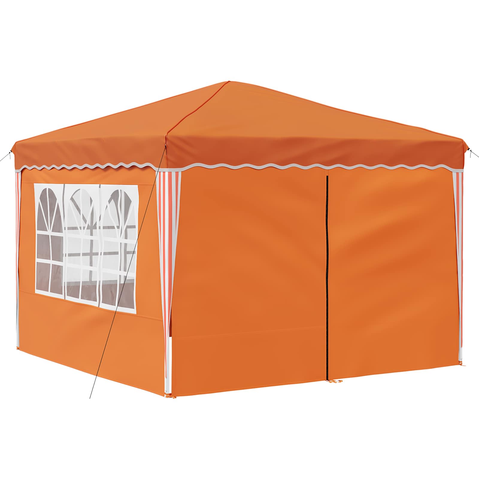 - Materialer: Teltet er lavet af Oxford-stof, der er slidstærkt og vandtæt, vilket sikrer, at det holder længe, selv under skiftende vejrforhold. Stofmaterialet giver også UV-beskyttelse, så gæsterne kan være trygge under solen. Stålrammen er pulverlakeret for stabilitet og holdbarhed.
